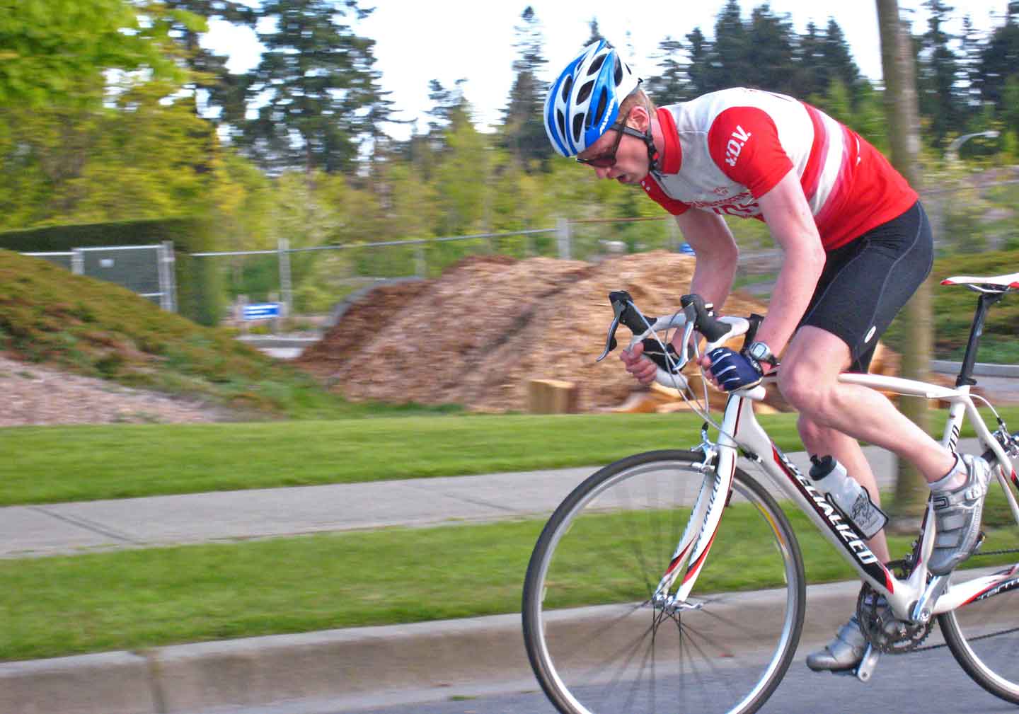 Just in from an enjoyable and equally impressive evening of racing down at UBC. It's called the 2010 World Tuesday Night Championships sponsored by Team Escape Velocity Cycling Club of Vancouver. Frankly, it's my first time out to see the race and cheer on Guy as he looked very good on the short but hilly circuit (1.6 km, 20 laps). He came in 5th, and he looked very pleased with his results. Maybe it was the batch of chocolate/coconut cookies I presented to him afterwards!